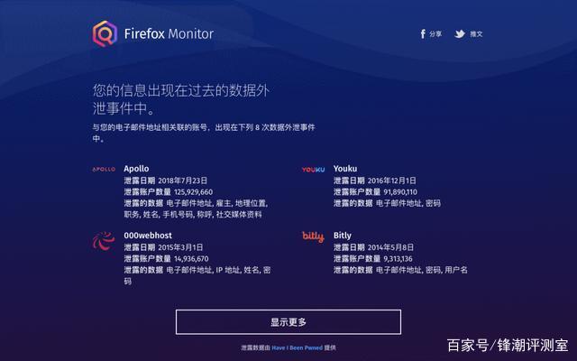 火狐早前推出了名为【Firefox Monitor】的数据泄露在线查询和监控服务。